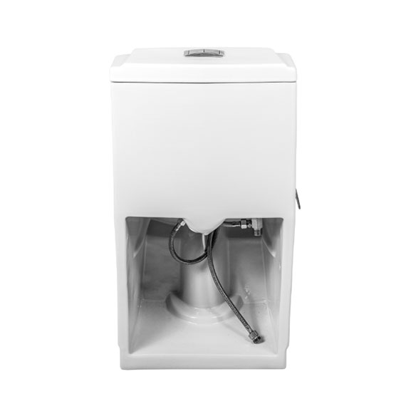این محصول به شکل مستطیلی با لبه های 90 درجه ظاهری کاملا مدرن و به روز را به خود گرفته است. اضافه شدن خطوط برجسته موازی و شکسته زیبایی فوق العاده خاصی به محصول بخشیده است. طراحی یکپارچه مخزن و کاسه به صورت یک تکه تا پایین روی پایه فرنگی این محصول را در نوع خود خاص کرده است.