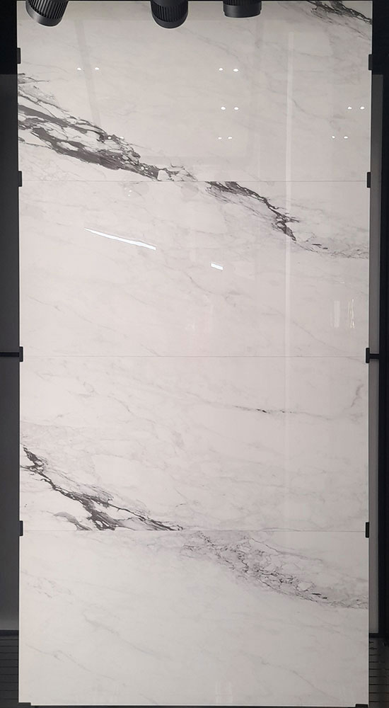 سرامیک ادموند هرمس تبریز 80 در 160 پرسلان فول پولیش دارای طرح سنگ کلکته سفید با رگه های طوسی می باشد. خاک استفاده شده در بدنه این سرامیک خاک سفید پرسلانی می باشد و جذب آب پایین تر و مقاوت بالاتری نسبت به خاک قرمز دارد.