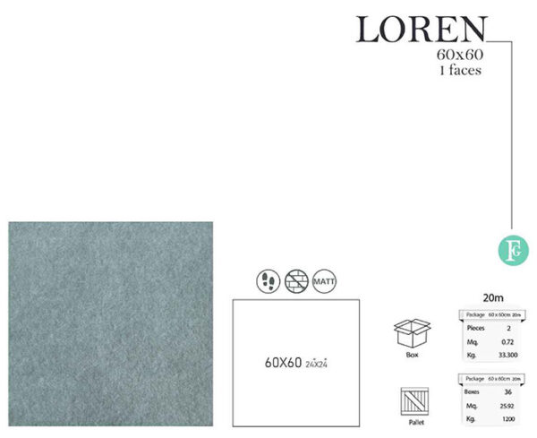 سرامیک لورن فخار 60 در 60 پرسلان مات 20 میلیمتر دارای طرح سمنت یا بتن خاص و جذاب با رنگ طوسی تیره می باشد. خاک استفاده شده در بدنه این سرامیک خاک سفید پرسلانی می باشد و جذب آب پایین تر و مقاوت بالاتری نسبت به خاک قرمز دارد.