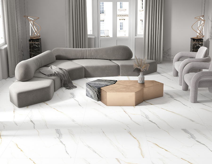 سرامیک آوریل هرمس تبریز 95 در 95 پرسلان فول پولیش دارای طرح سنگ کلکته گلد سفید با رگه های طلایی و طوسی خاص و جذاب می باشد. خاک استفاده شده در بدنه این سرامیک خاک سفید پرسلانی می باشد و جذب آب پایین تر و مقاوت بالاتری نسبت به خاک قرمز دارد.