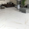 سرامیک ادین عقیق 100 در 100 پرسلان نانو پولیش برگرفته از طرح سنگ کلکته گلد با رنگ سفید و رگه های طلایی می باشد. خاک استفاده شده در بدنه این سرامیک خاک سفید پرسلانی می باشد و جذب آب پایین تر و مقاوت بالاتری نسبت به خاک قرمز دارد.
