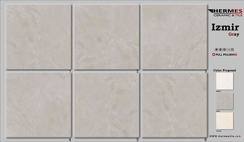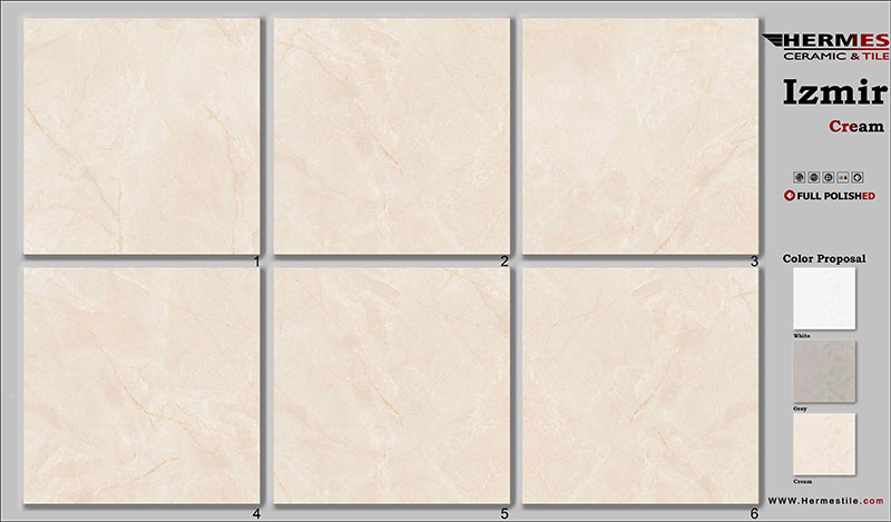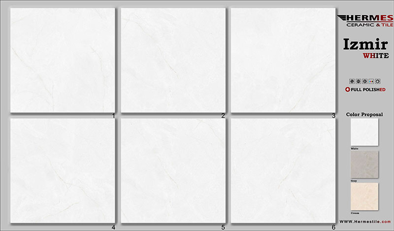 سرامیک ازمیر هرمس تبریز 95 در 95 پرسلان فول پولیش دارای طرح سنگ رگه دار زیبا و جذاب در رنگ های سفید، کرم و طوسی می باشد. خاک استفاده شده در بدنه این سرامیک خاک سفید پرسلانی می باشد و جذب آب پایین تر و مقاوت بالاتری نسبت به خاک قرمز دارد.