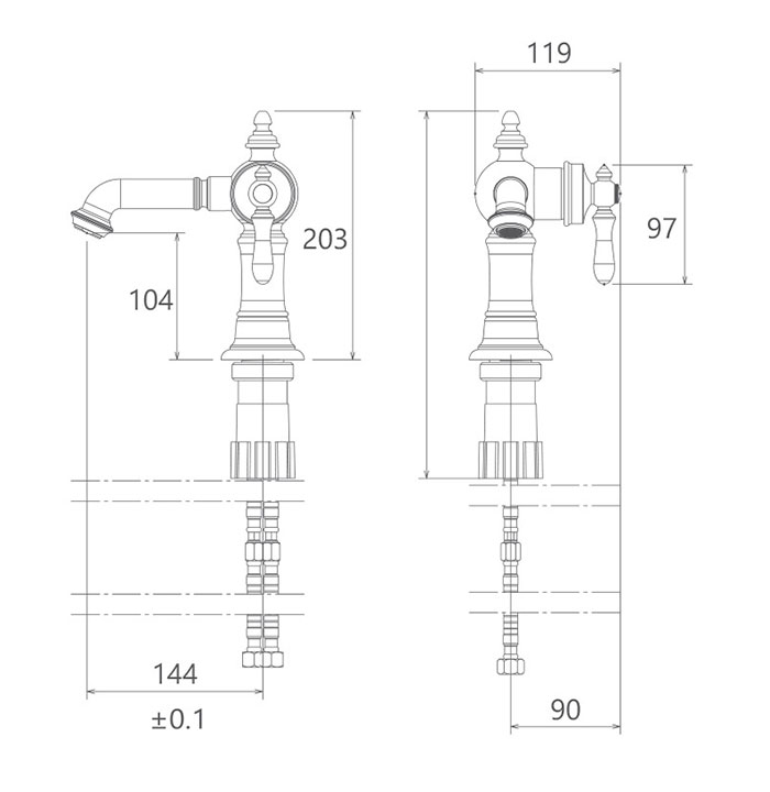 شیر روشویی شودر بیزانس کروم مدل ثابت